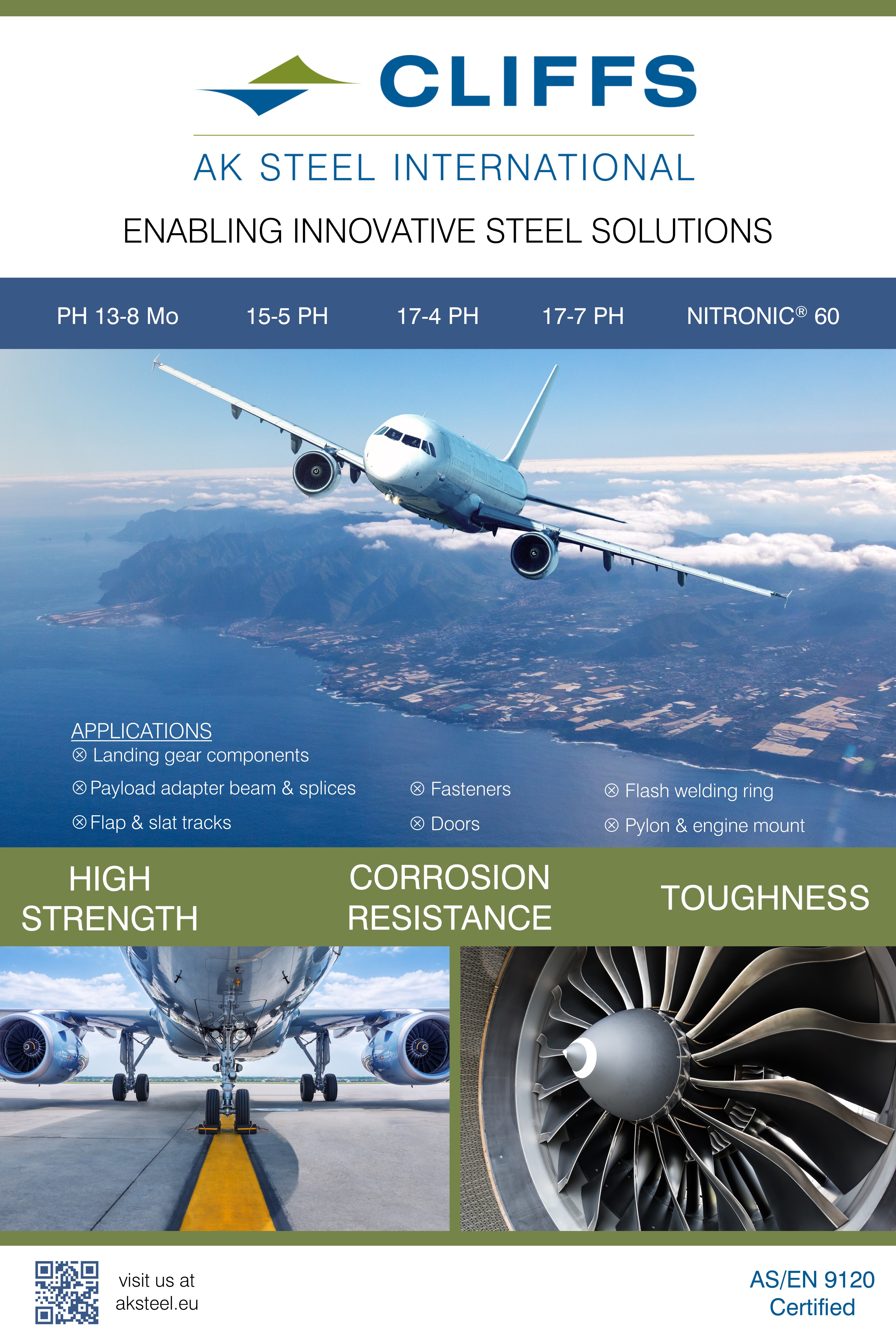 L'evento vi darà l'opportunità di conoscere meglio le nostre capacità, i principali prodotti e servizi dedicati all'industria aerospaziale e della difesa. AK Steel International ha sviluppato un'ampia gamma di prodotti inossidabili e speciali approvati per il settore aerospaziale, tra cui il ferro puro ARMCO e i materiali ausiliari.